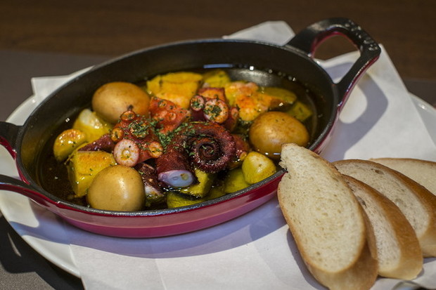 次はオイル怪獣タッコングがやはり自らの肉を提供している料理「タッコングのおススメ!オイルと蛸のハーモニー」(1180円〈税別〉)。我が身を大好きなオイルで煮込んだものをバケットと共に提供する。