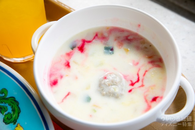 さらりとした飲み口のチャウダースープは、大きなミートボール入り。