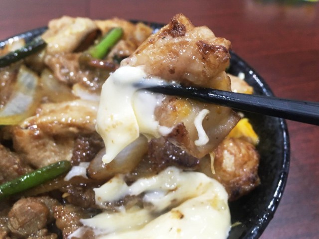 マルチョウのほかにも、しっかりと味付けされた牛カルビと豚カルビ、すべて合わせて160gという破格のボリューム!「年末に向けてお客様に還元」(すた丼広報)という言葉にも頷けます。