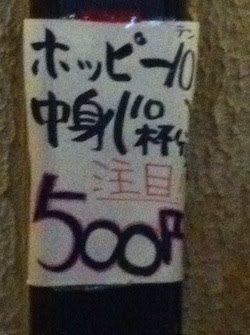 勢いで、「ホッピー中10杯500円」を追加注文しようとすると、