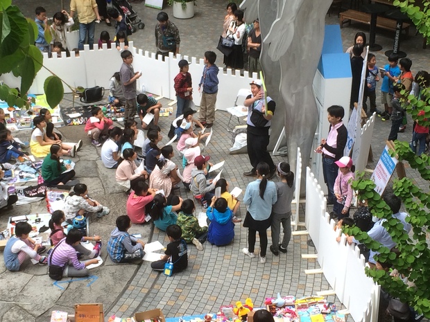 最初は緊張している子もいますが、時間が経つうちだんだん打ち解けて、おもちゃを売ってる子なら遊び方を教えたりもしていますよ。そうやって知らない子と話すことで発信力が身につくようです。