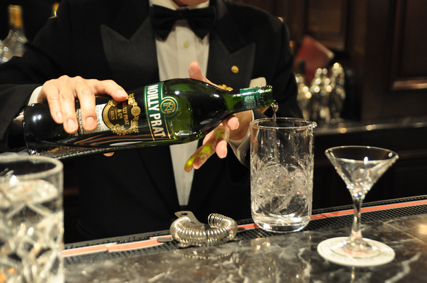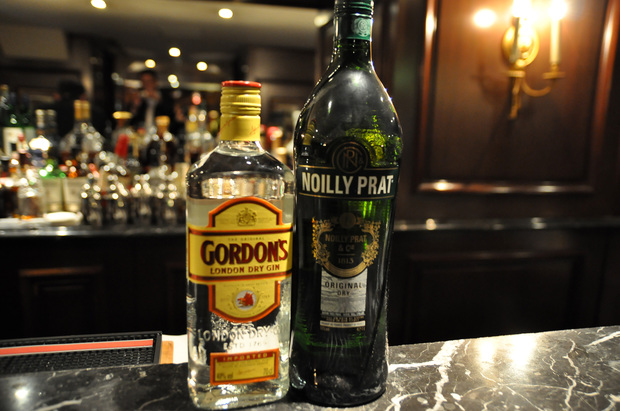 水を捨て、ドライ・ジンとドライ・ベルモットを注ぐ