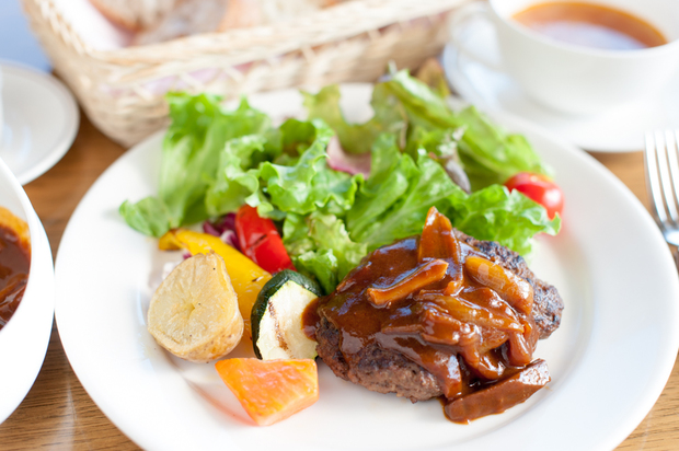 はやきた鈴木牛のハンバーグも楽しめます。ハンバーグといっても、食感はお肉そのもの。はやきた和牛特有のおいしさをあますところなく堪能できます。