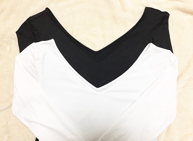 フロント、バックともにVカッティングになっているこちらは、昨年のモデル。これに代わって今期はフロントがV、バックがラウンドの『GUウォームリブレースVネックT長袖』が展開されています。