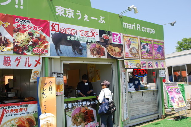 東京Xを焼いたものに、獲れたての野菜とカポナータなどが添えられています。沢山の野菜が入っていて¥500と、会場の中でもなかなかリーズナブル、なおかつ女子ウケしそうな肉料理。豚肉のビタミンと野菜の栄養がたっぷり詰まったワンプレートはアッサリしているのでダイエット中に沸きがちな「罪悪感」が残りません(笑)