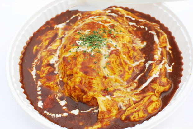 ふわふわのオムレツとにんにくの香りが引き立つオリジナルのチキンライスに、自慢のデミグラスソースをかけて提供されます。