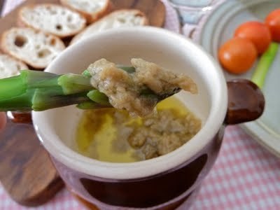 瓶から適量のソースを取り出し、バーニャカウダ・ポットの鍋に入れる。