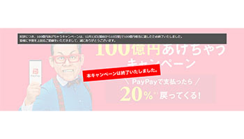 ソフトバンクとヤフーが出資するPayPay(ペイペイ)は12月13日、同社が提供するスマートフォン決済サービス「PayPay」で12月4日から実施していた「100億円あげちゃうキャンペーン」を終了したと発表した。PayPay利用時の決済額の20%、あるいは全額が戻ってくる特典はなくなり、今後の還元率は通常特典として0.5%になる。