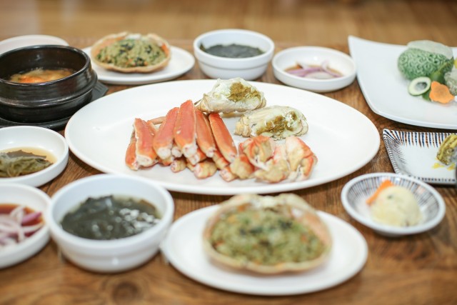 カニの盛り合わせのほか、お店によって一緒に出てくるパンチャン(付け合せのおかず)が違うので、1軒、1軒巡ってお気に入りのお店を探すのも楽しいかも。特別メニューとして料理されて出てくるカニはズワイガニを使用。脂肪が少なく消化のよい身からダイエットに効果的といわれる成分が含まれた甲羅まで、丸ごと楽しめます。
