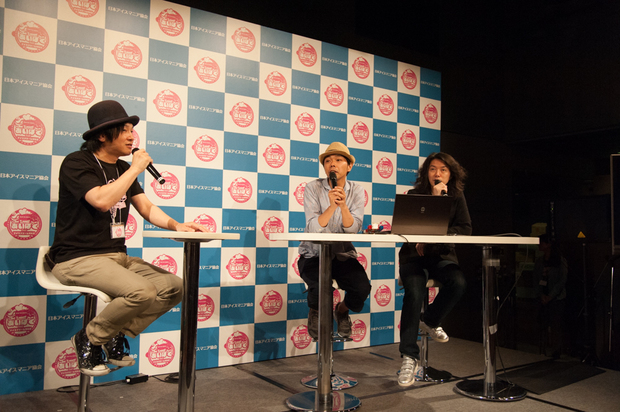 「コレジャナイロボ」「土下座ストラップ」など、ちょっとおバカなアイテムを世に送り出しているユニット、ザリガニワークスのトークショーです。「アイス」をテーマに、おバカな創作アイテムが飛び出し、大盛り上がりでした。