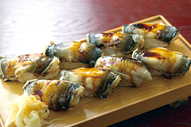 穴子ずし 2500円 サッと炙った香ばしい穴子、コクのあるツメとシャリが三位一体のうまさを醸し出す。