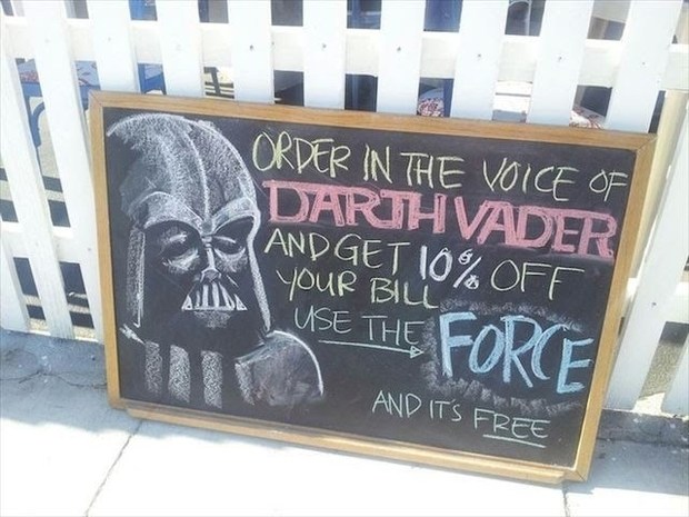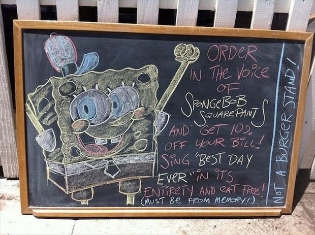 こちらは海外ですが、アメリカのカリフォルニア州バーバンクにあるレストラン「Not a Burger Stand」では、その時々によってお店のチョークボードに描かれた有名キャラクターや有名人の声真似で注文すると10%割引になるそうです。