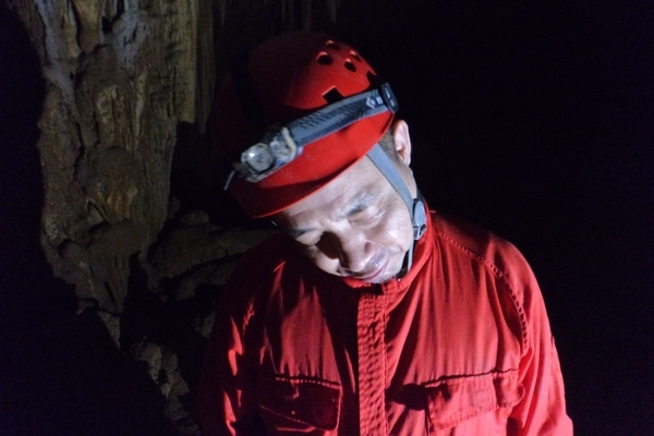 ガイドさんが運んでくれたオニギリとカップ味噌汁をいただきます。こんな地底洞窟の中で味噌汁が飲めるなんて…。疲れ切った身体に、味噌の塩分が染みます。