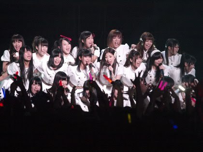 この日のセトリは、『ハジメマシテ』『チャイムが終われば』ではじまり、ニューシングルの『さくら果実』『Sakura物語』をはさんで、『カロリーなんて』で締める、という並び。去年、渋谷公会堂で開催されたアイドル横丁祭のセットリストを元に、中盤をニューシングルに入れ替えた、という感じですね。ガツンとビックリするというよりも、うむうむ、いつものLinQだな、という印象。お客さんは、一部は熱狂的に、そして一部は物珍しげに眺めているというリアクションでした。特にクールな『Sakura物語』は、客層が若いこともあってか、「ポカーン」というリアクションでしたね(笑)。テンポが速くて盛り上がれる『カロリーなんて』が盛り上がったところを見ると、この日のような客層向けに、さらにアゲアゲの楽曲を用意してもいいのかも知れません。あ、あとですね、Sakura物語で、これまでQtyにいた天野なつちゃんがLadyに本格加入しているのを見たんですが、もうなんか、ドキドキっていうか「こんなに大きくなって…」みたいな感慨を覚えちゃいました(上の写真左)。いやはや、MCで見せた、ゆうみんの超絶ヘン顔「ならぬ顔」も含め、大会場にLinQの足跡は残したと思います!よくやりました!