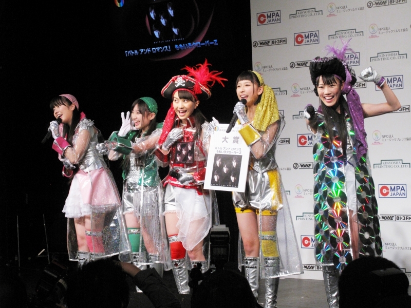 そしてついに大賞の発表です。場内に響く『Z伝説~終わりなき革命~』に乗せももいろクローバーZのメンバーが登場すると、メディア関係者しかいないはず の客席から野太い歓声が! どんな状況でもガチなファンを引き寄せるももクロの皆さん、さすがです。