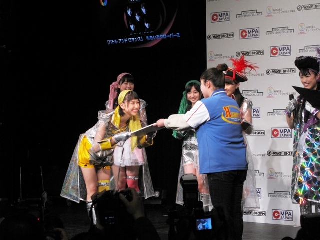 5人を代表して百田夏菜子さんと玉井詩織さんが盾を受け取り、恒例の自己紹介も しっかりフルで披露。それにしっかり応える一部のモノノフ。