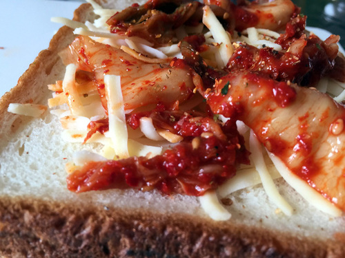 トースターでチンすれば、キムチ好きにはたまらないトーストが完成!