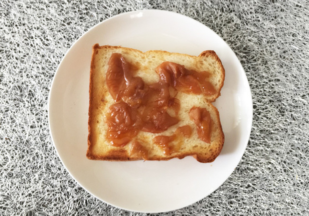 パンに梅干しを敷き詰めた上からはちみつをお好みの量垂らしてトーストでチン!