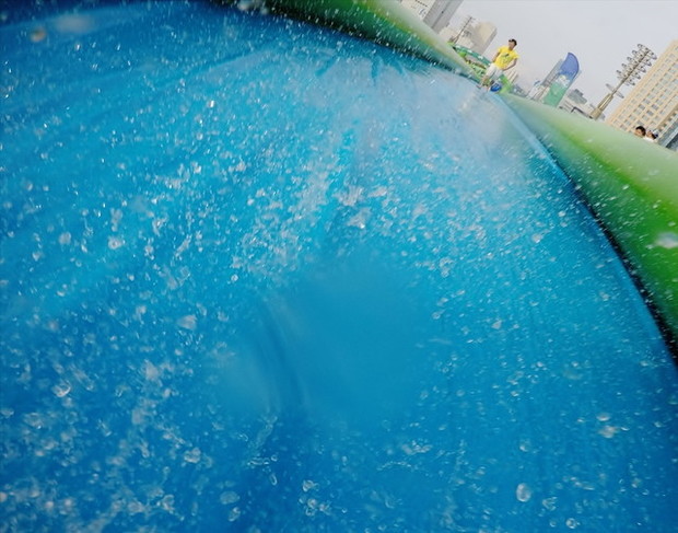 日本で一番長いウォータースライダーは、266.5メートルらしい(福井・芝政ワールド/トリプルザウルス)。「スライド・ザ・シティ」 は、それよりも長い300メートル。自分で助走をつけながらのスライドは結構体力を使う。