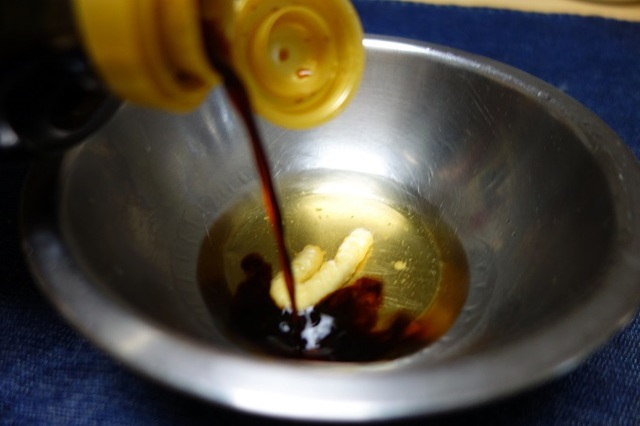 醤油、おろししょうが、料理酒(なければ水)を合わせて、よく混ぜておきます。