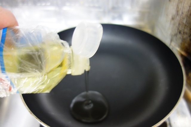 フライパンに、炒め油大さじ5を入れます。