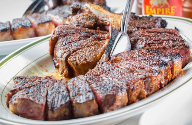 NYのエンパイアステーキハウスで定番の「ポーターハウスステーキ」は、肉の王様サーロインと赤みの希少部位ヒレを同時に楽しめるTボーンステーキ。
