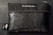 ポーチ上部にはB.H.C.C.のブランドロゴを刺繍で、さらにサイドには王様(ミッキー)のシルエットタグを配置。