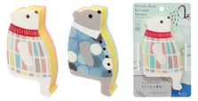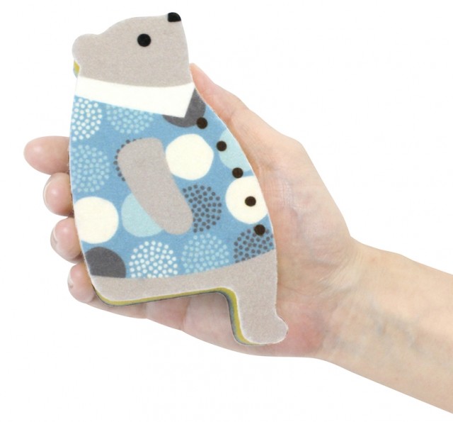 そんなおすわりスポンジシリーズにクマが登場。『おすわりスポンジ クマ』は、機能や使いやすさはそのままに北欧風のチェックとドットの服を着た白とベージュのクマをモチーフにしたスポンジになっています。優しい色合いが、本当に可愛いんですよね。