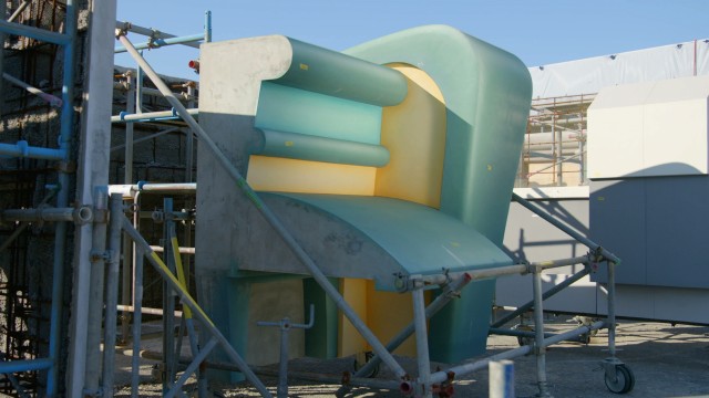 美女と野獣エリアのすぐ側には、トゥーンタウンにオープンする「ミニーのスタイルスタジオ」の壁もテストされていました。