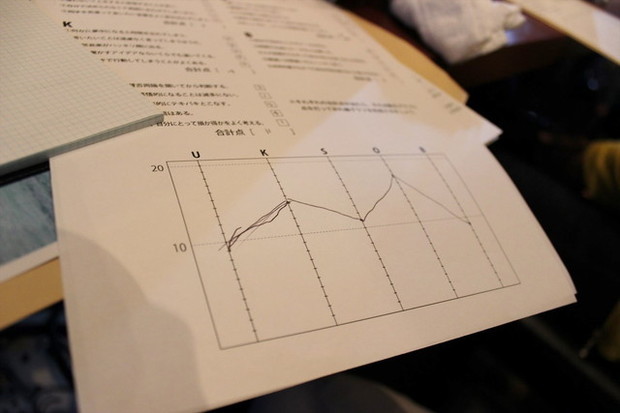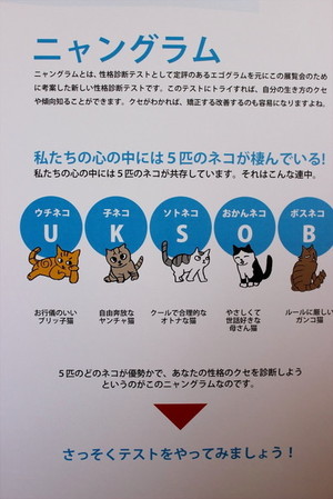 ニャングラムを会場の参加者全員で試し、それぞれのタイプごとに解説。ニャングラムとは、性格診断テストとして定評のあるエゴグラムを元にして、この展覧会のために考案されたもの。