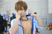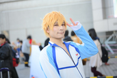 そして、2018年夏に放送されたアニメ『Free!』からは、岩鳶高校水泳部のメンバー(七瀬遙、橘真琴、葉月渚、竜ヶ崎怜)が集結。12月の中でもかなり冷え込んだコミケ1日目でしたが、その寒さを感じさせない、爽やかな姿を見せてくれました。