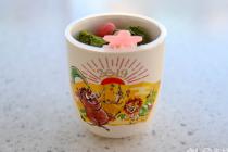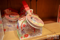 背景の屏風には、ダルマに扮したティモン、ミッキーやミニーがデザインされています。