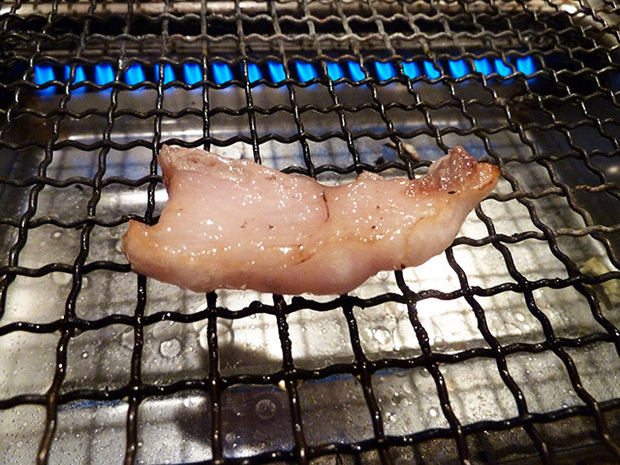 脂身が多い部位を網にのせると、脂で身がはぜる。