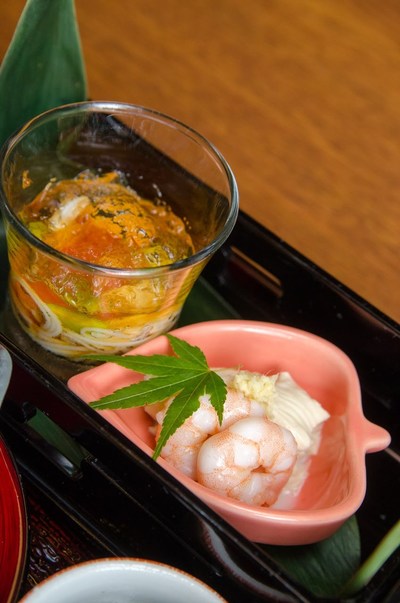 柚子風味八方旨出汁素麺、海老とトロ湯葉