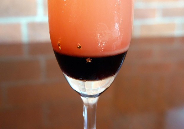 こちらのカクテルはなんとよく見ると、「星形の金粉」が入っているのです。