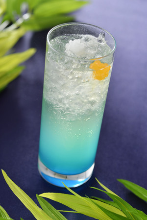七夕の夕暮れをイメージし、太陽が沈む直前に青い光が瞬くというグリーンフラッシュという現象を再現したのがこのドリンク。