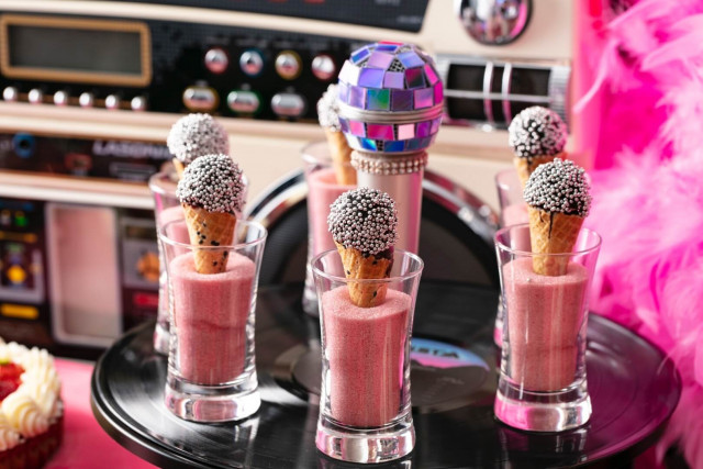 平成最後の今年は、1980年代、90年代の懐かしく華やかな時代に再度注目が集まっている。今回はスイーツとともに、そうした世界観を創り上げるミラーボールやボディコン、レコード、ラジカセプレイヤー、ネオン看板などのレトロでバブリーな装飾と、現代風のカラフルな色使いを融合させ、懐かしいながらもポップな空間が出現。
