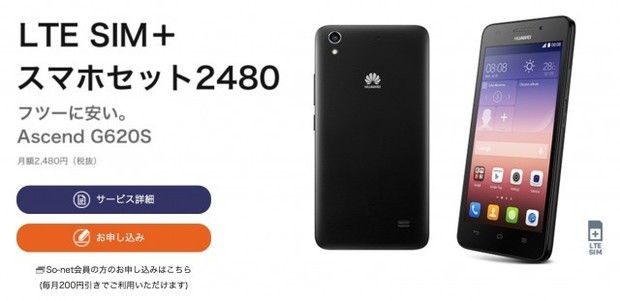 格安スマホにはいろいろな種類があります。たとえば…。So-netの格安スマホなら、スマホ本体と通信・通話のセット月額2,480円(税抜)からスタートできます。パケット料金だけじゃありませんよ。スマホとセットでこの値段です。元はdocomoの回線なので、エリアも広く山間部でもOK。日本中で使うことができます。