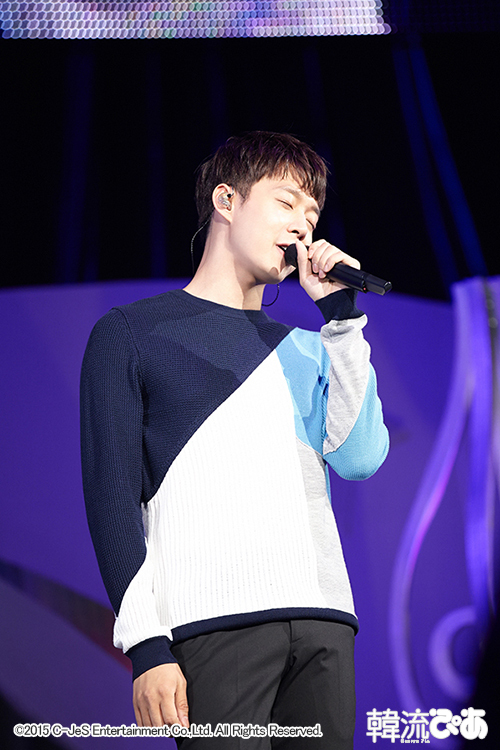 続けて、「多分、ジェジュンも軍隊で皆さんのことを考えながら頑張っていると思うんですけど、僕だけじゃく、僕たち3人、そして今回のドラマもたくさんの応援お願いします」と、会場を感動と拍手の嵐に包み、最後に自作曲『30』を熱唱。ゆるやかでポップなメロディを甘く歌い上げた。