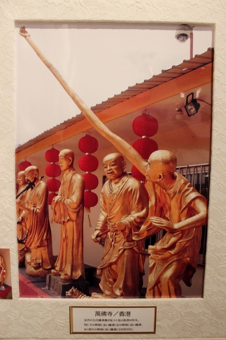展示されている写真を比べて見ると、国内の寺や仏像のシンプルな色合いに対し、国外(ここでは東南アジアがほとんど)の仏像やコンクリ像のカラフルなこと……。もはや海外の珍寺は、宗教のテーマパークのような存在なのであろう。