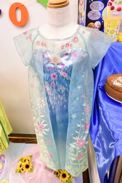 花の模様をあしらった素敵な新作ドレスで、エルサになりきることができます。