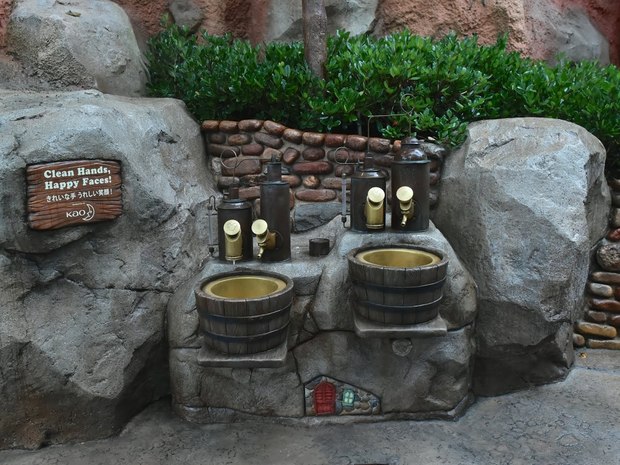 クリッターカントリーのハンドウォッシングエリアは自然あふれる外観。