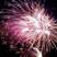 日暮れの頃に花火が次から次へと夜空に舞い上がり、夜空を美しく染め上げる。