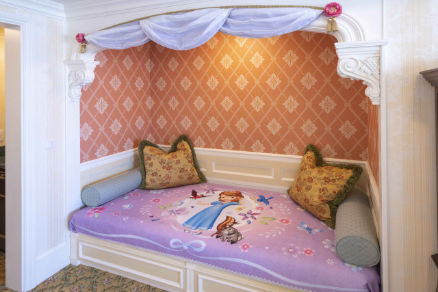 アルコーヴはソフィアのベッドをイメージした天蓋のような装飾が。