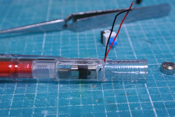 せっかくなので、ペンにも振動モーターを入れてみましょう。