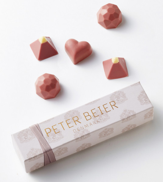 デンマーク発のブランドがジェイアール京都伊勢丹に初登場。ルビーカカオ由来のピンク色を楽しめる5粒は、ハート型やピラミッド型など形もとってもキュート。ベリーのようなフルーティな酸味が魅力。