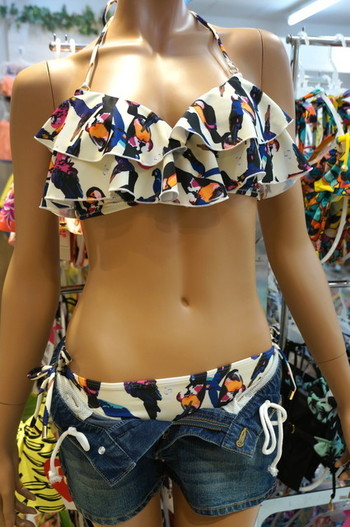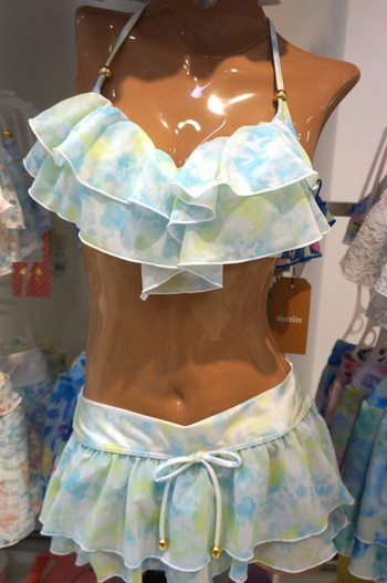 さて今年の水着の特徴は、今までの「胸の谷間を強調」したりするようなグラマー路線ではなく、「スタイルアップ(着やせ)」が主流なのだそうです。
