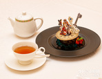 シリーズのモチーフでる王冠をココアパウダーで表現し、ハート型のイチゴが添えられています。