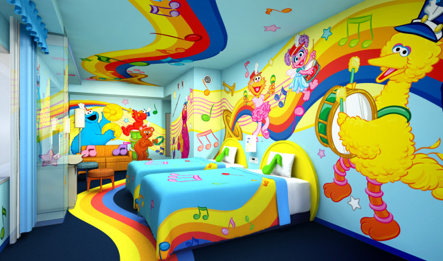 インテリアや天井、 ベッドカバーに至るまで、 セサミストリートの世界をトータルで満喫できます。