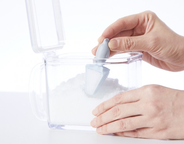 容器の側面ですりきりしやすいフラット形状なので、簡単にきっちり計量できます。